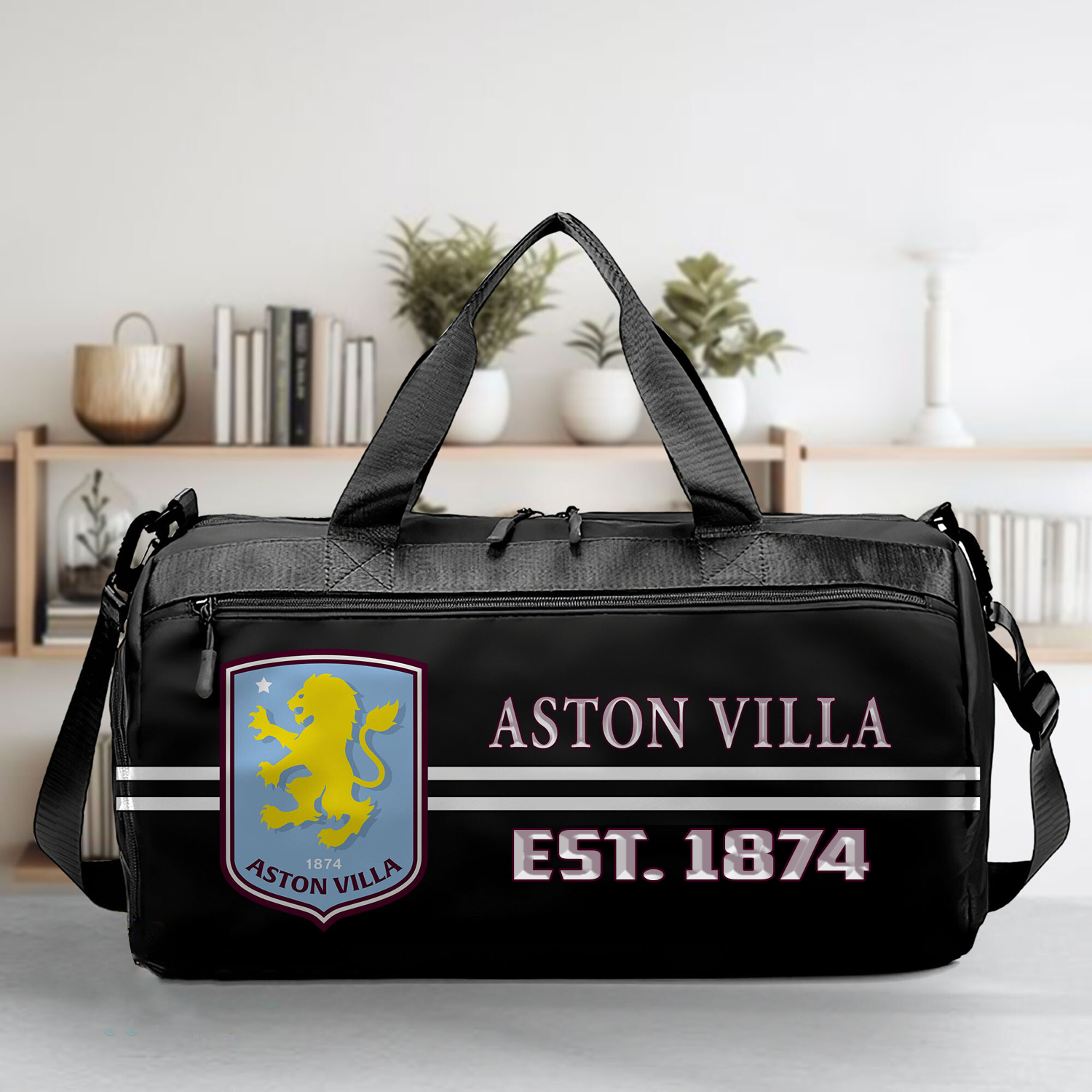 - The duffle bag is designed with a sturdy handle, prominent printed logo, high-quality zipper, delicate seams.