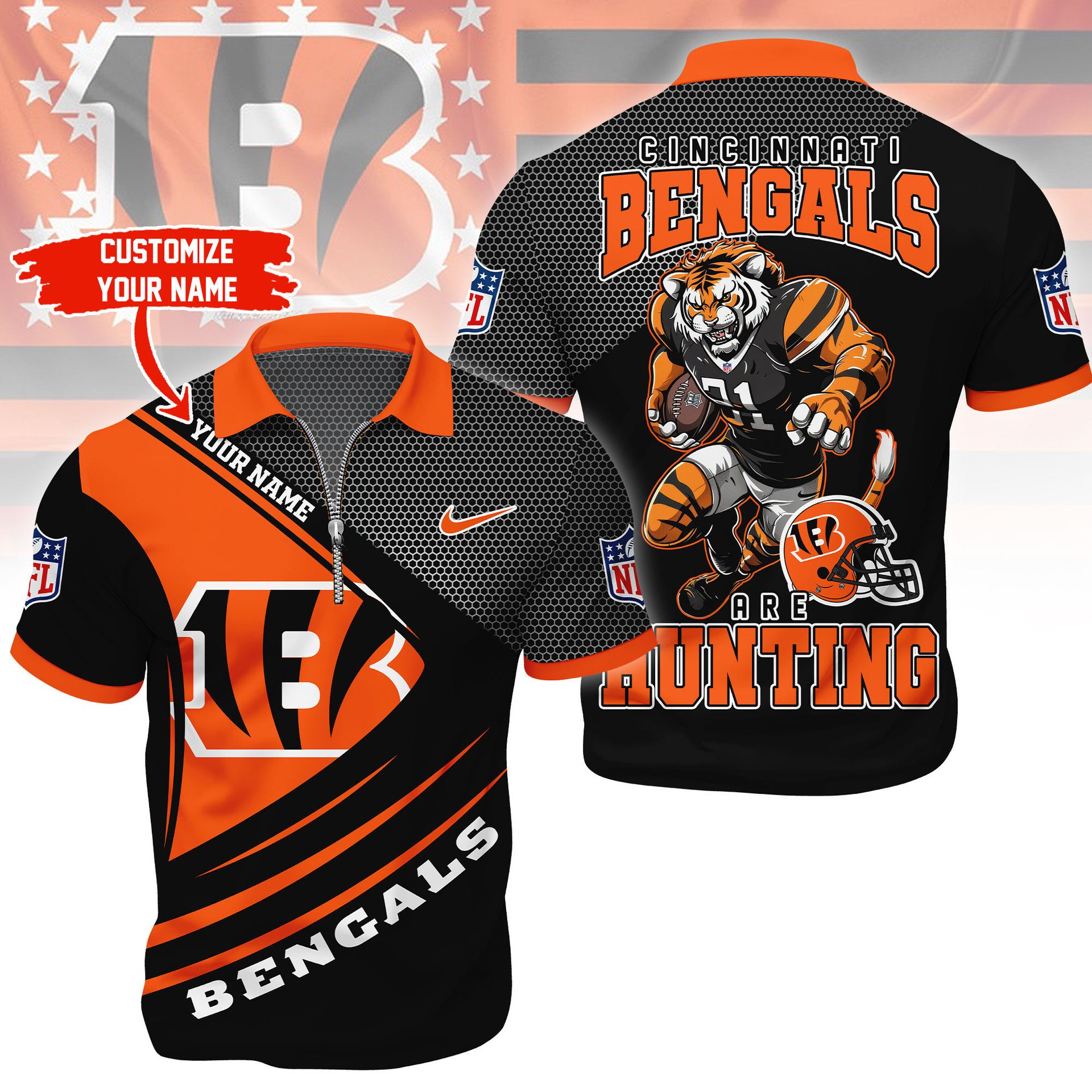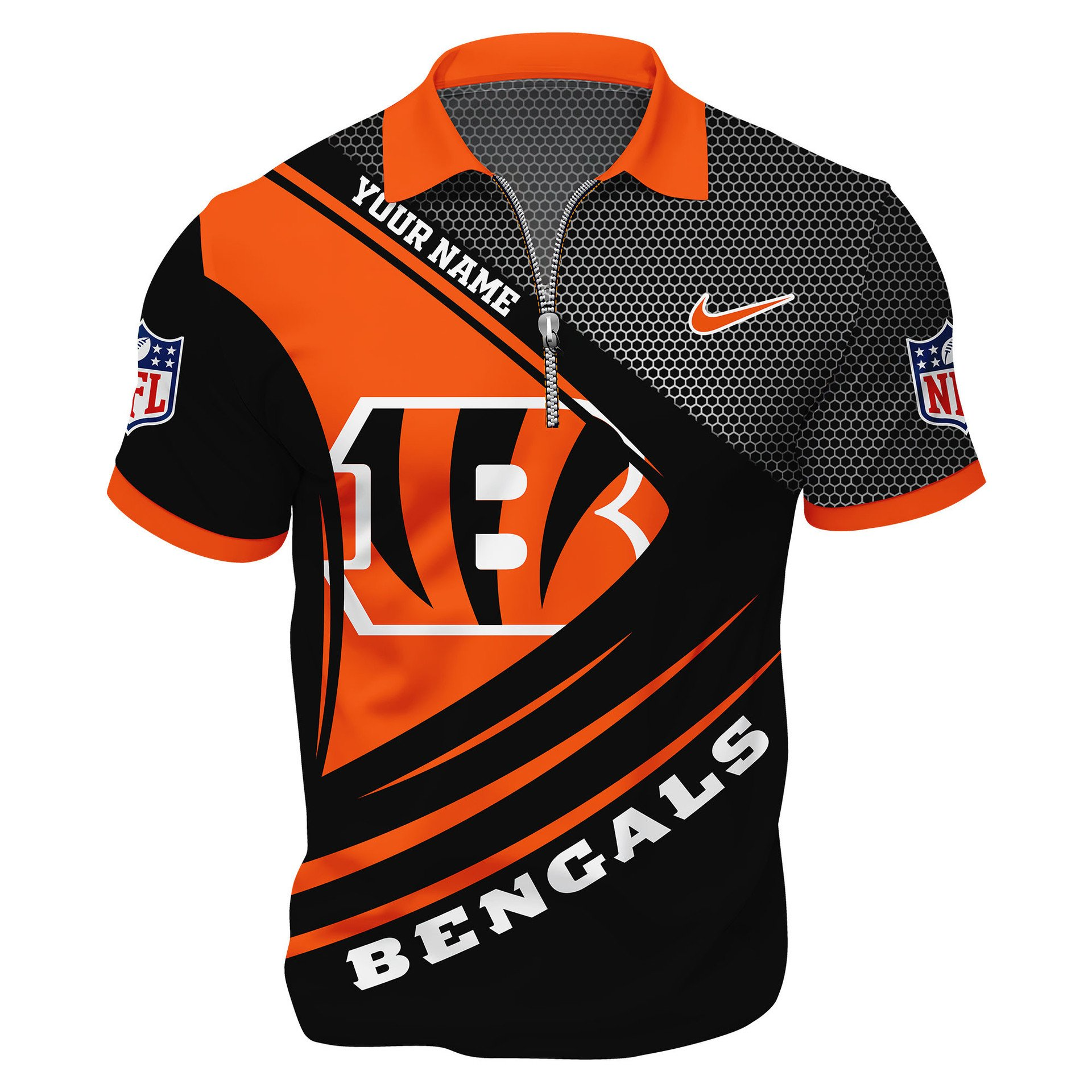 CIN Premium NFL Game Day Polo With Zipper Shirt DDT NTL