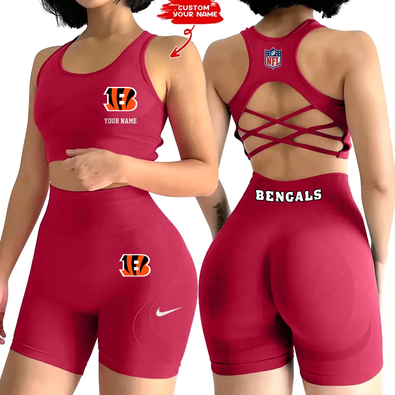 CIN x NFL 2-PCS Women's Seamless Yoga Set Sexy Sport Bra High Waist Sports Shorts DATND TANTD