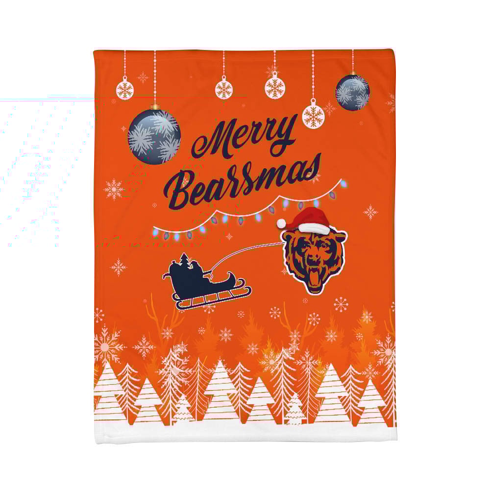 Premium NFL CHI Christmas Fleece Blanket & Throw Pillow Combo V1 NMD NHM
